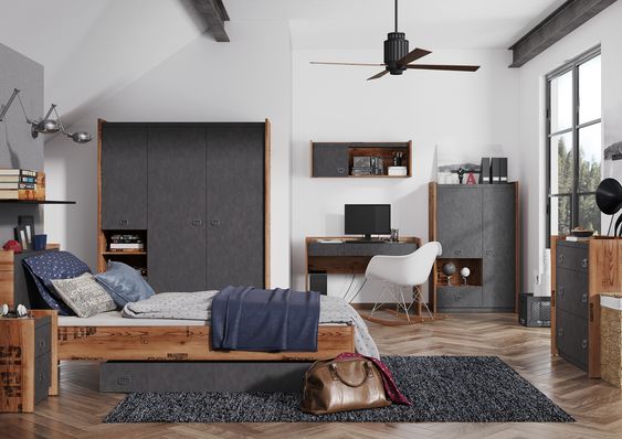 The Fargo Wardrobe 02 balances robust construction with a minimalist, urban look. Its combination of concealed and open storage supports clothing organization, display of accessories, and everyday convenience while maintaining a clean, architectural presence in the room.