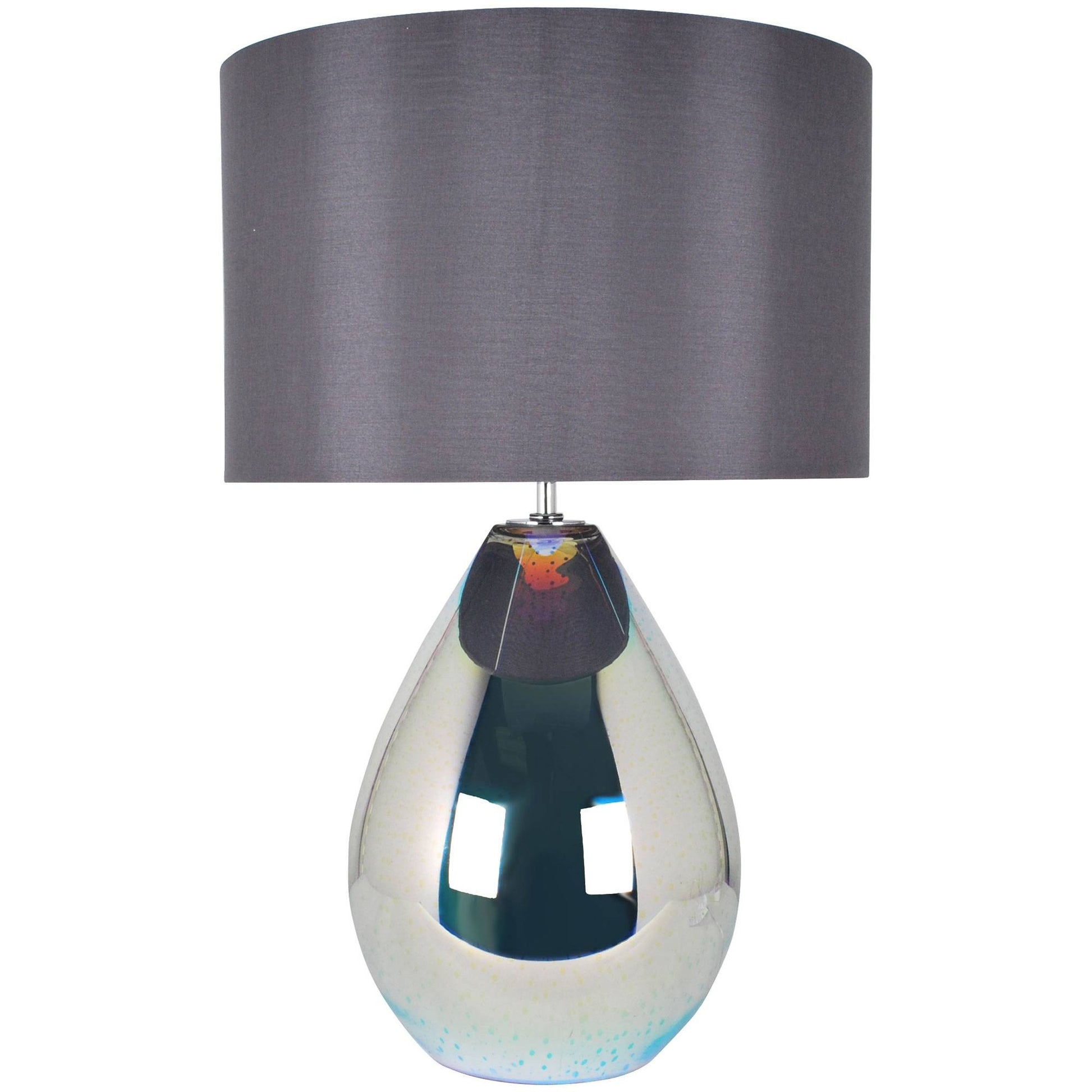 A beautiful addition to your home, the Geller Table Lamp is a stunning piece from Pagazzi Lighting. Featuring a smoked glass base with a holographic effect when lit, it has been paired with a smart grey taffeta lamp shade. This Dual Lit lamp is operated by a lamp holder switch and in-line switch. It is perfect for use in living rooms, hallways and as a bedside lamp in bedrooms.