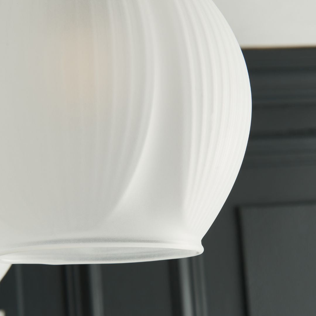 Combining classic design with modern elegance, this ceiling light adds a warm, vintage charm to any room. The three gracefully curved arms support frosted glass shades, which softly diffuse light for a welcoming and ambient glow.