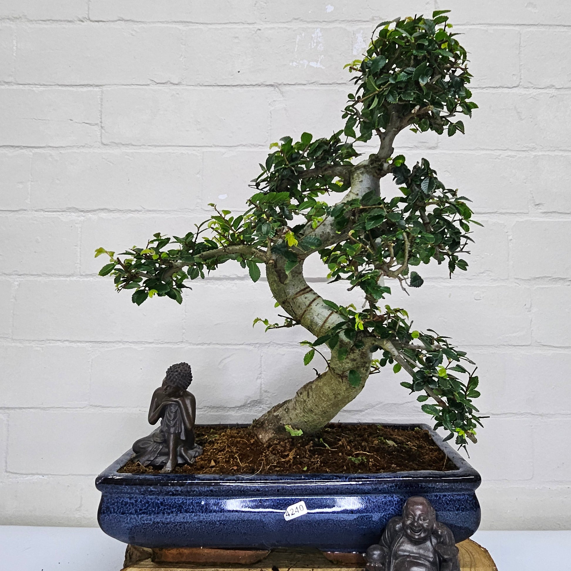 Large Chinese Elm Bonsai tree, shaped style, in a 35cm glazed pot