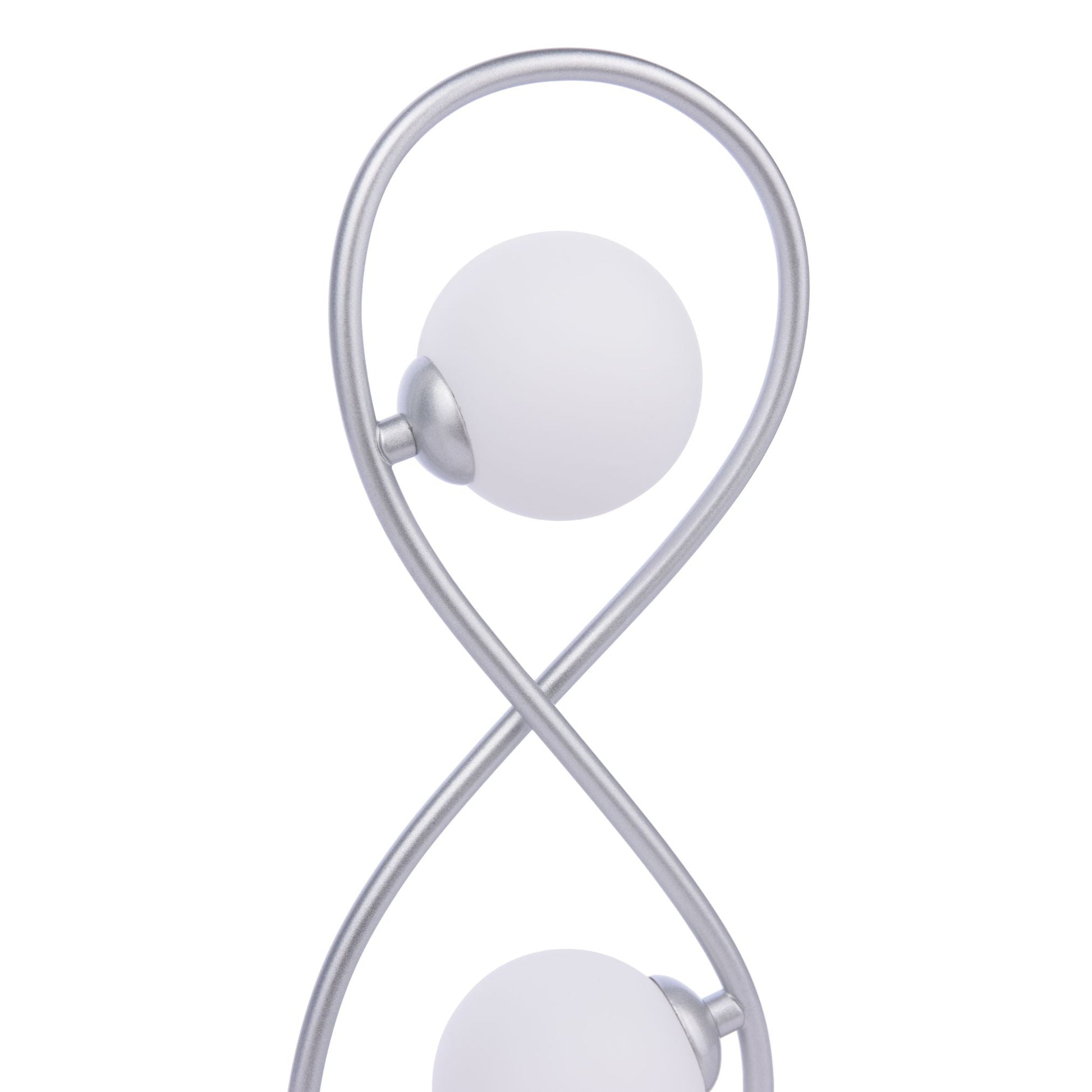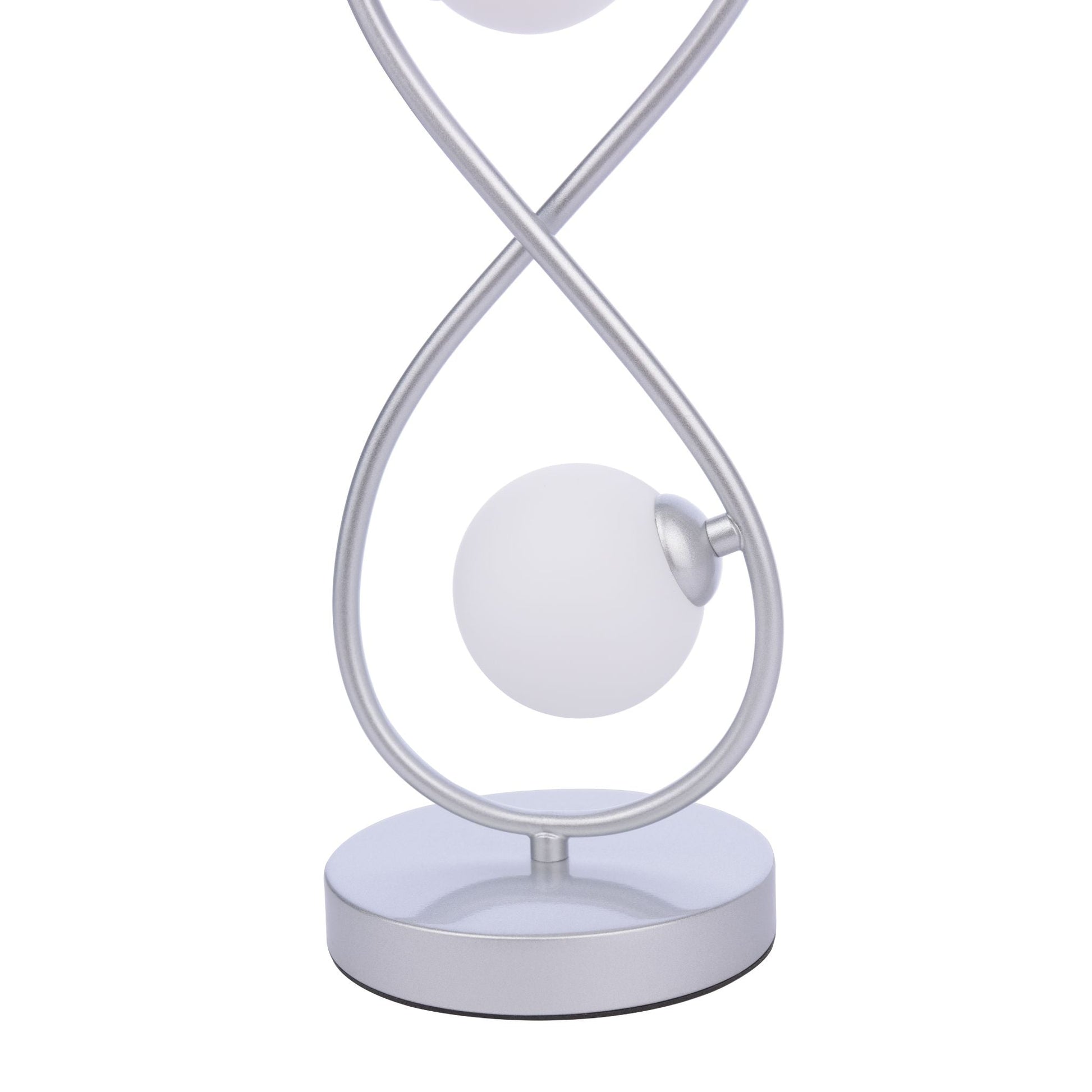 Lena 2-light table lamp, featuring a twisted loop design, opal glass globe shades and a matte silver finish.