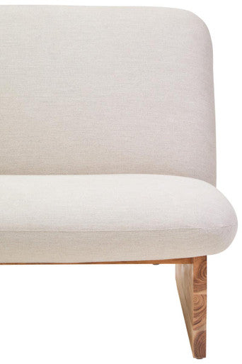 Made from eco-friendly mango and acacia wood, this two seater armless sofa boasts a natural charm with vividly grained wooden base. The seat and back of this sofa is upholstered with textured linen, making it a stylish addition for a variety of decor styles.